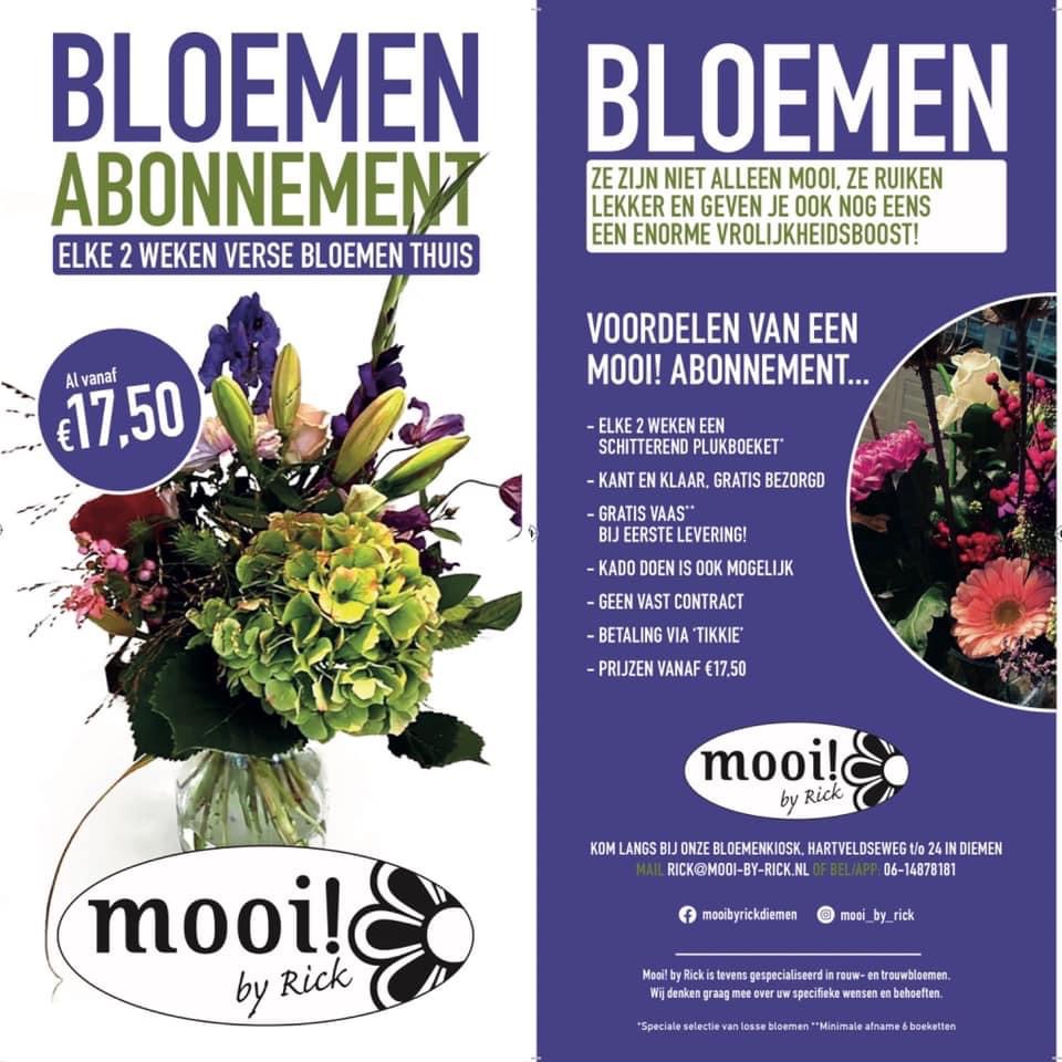 “Mooi! by Rick” biedt u ook de mogelijkheid om een “Bloemen Abonnement” af te sluiten.